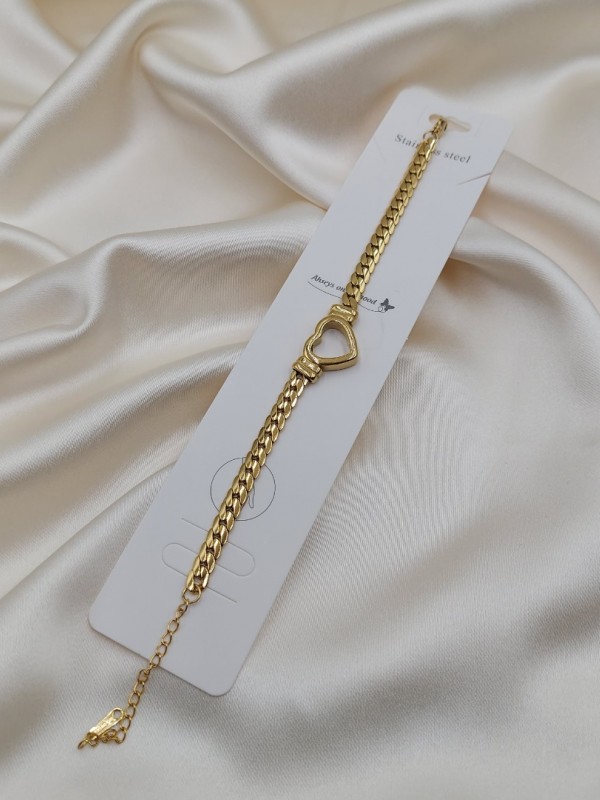 klasik Açık Kalpli Gold 316L Çelik Bileklik