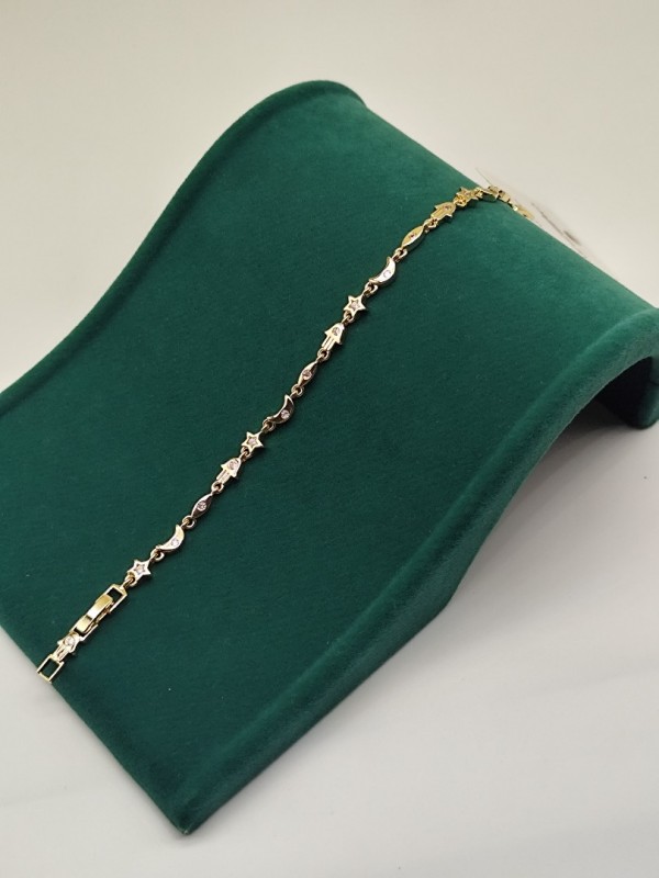 Ay ve yıldız figürleriyle tasarlanan bu VIP bileklik, şans, umut ve pozitif enerjiyi simgeler. Sembolik anlamı ve zarif tasarımıyla anlamlı bir aksesuar tercihidir.