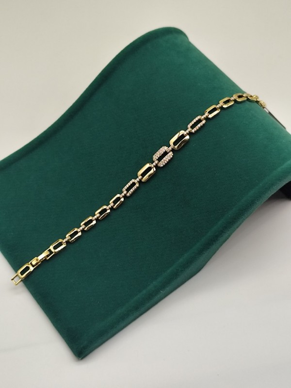 VIP Taşlı Oval Detaylı Altın Kaplama Bileklik