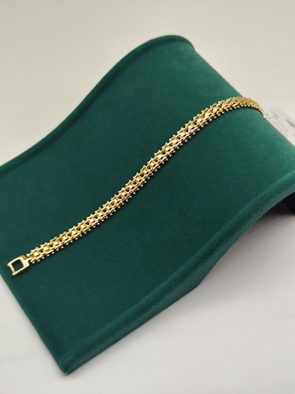 Sık ve dengeli örgü zincir formuyla tasarlanan bu VIP bileklik, bilekte dolu ve güçlü bir duruş sergiler. Altın kaplama yüzeyi sayesinde parlaklığını uzun süre korur. Maskülen ama şık yapısıyla hem günlük kombinlerde hem de özel anlarda net bir stil tamamlayıcısıdır.