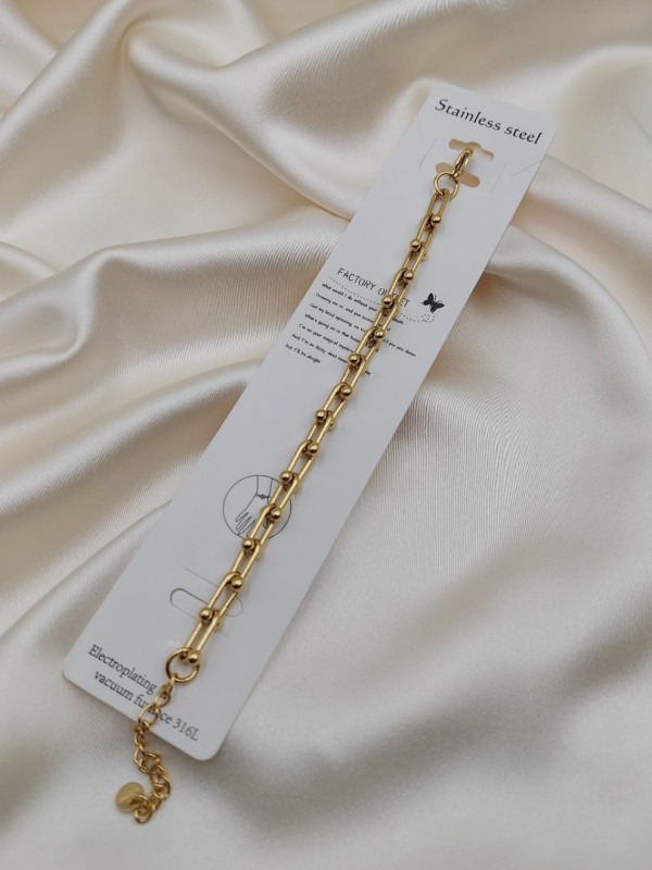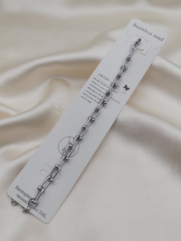 • "Zincir Silver 316L Çelik Bileklik, modern ve şık tasarımıyla dikkat çeker. 316L paslanmaz çelik malzemeden üretilmiş olan bu bileklik, altın kaplama ile zengin bir görünüm sunar. Zincir deseniyle özgün bir stil sağlar ve her tarz ile uyum sağlar. Günlük kullanıma ve özel günlerdeki şıklık arayışınıza cevap verir."